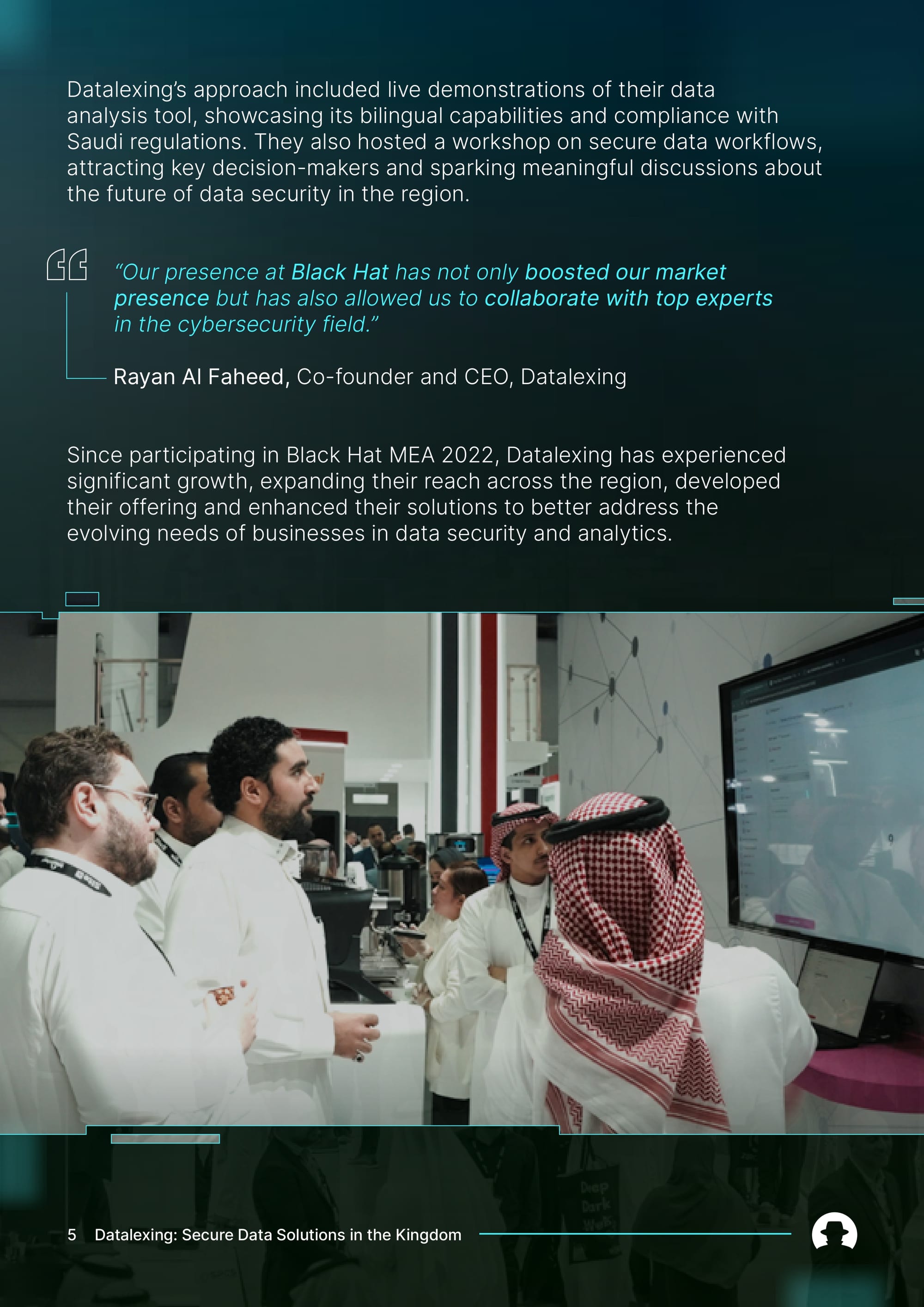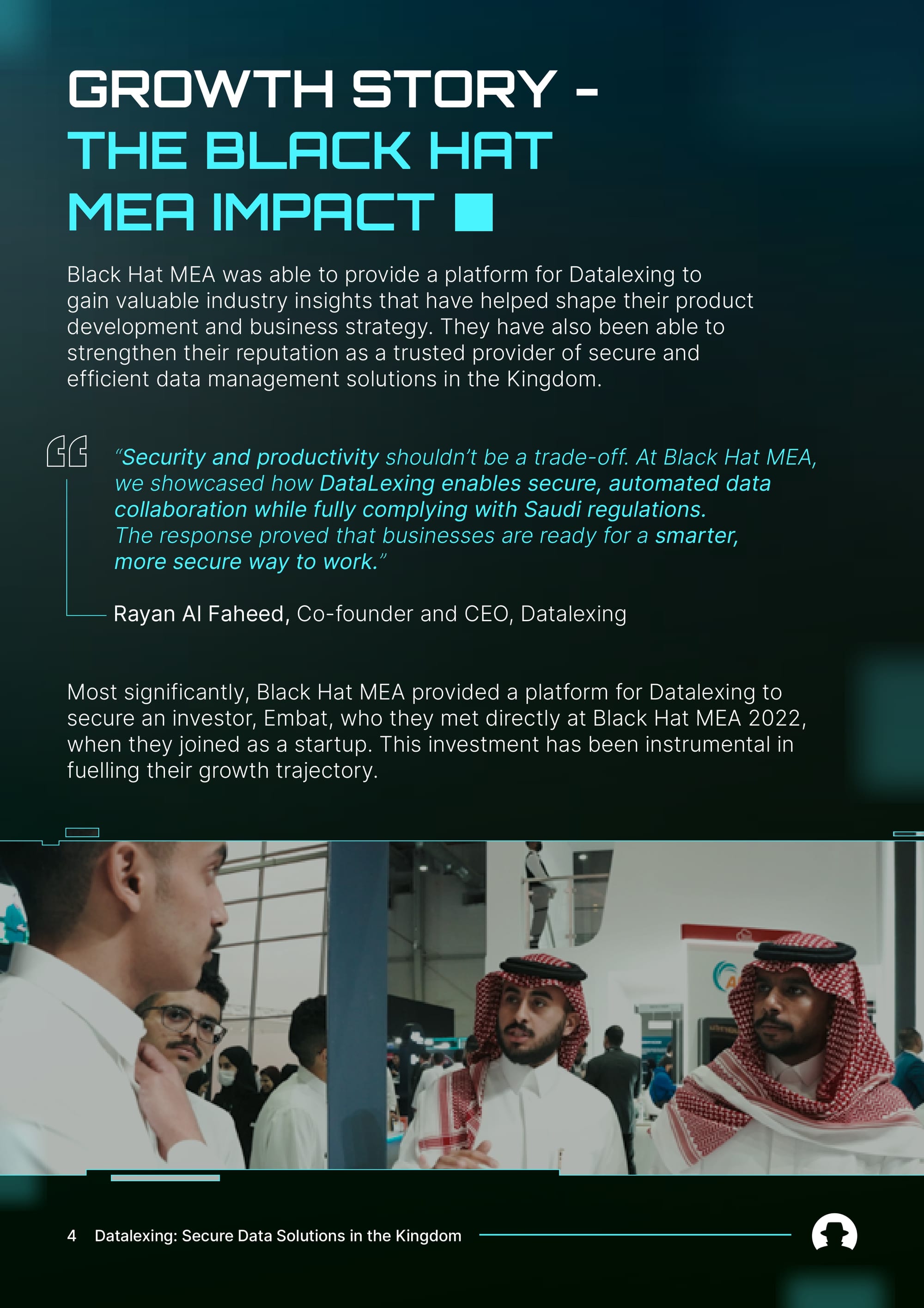 This case study highlights how their presence at Black Hat MEA became a turning point – from breaking into a competitive market to securing investment and scaling their solutions.